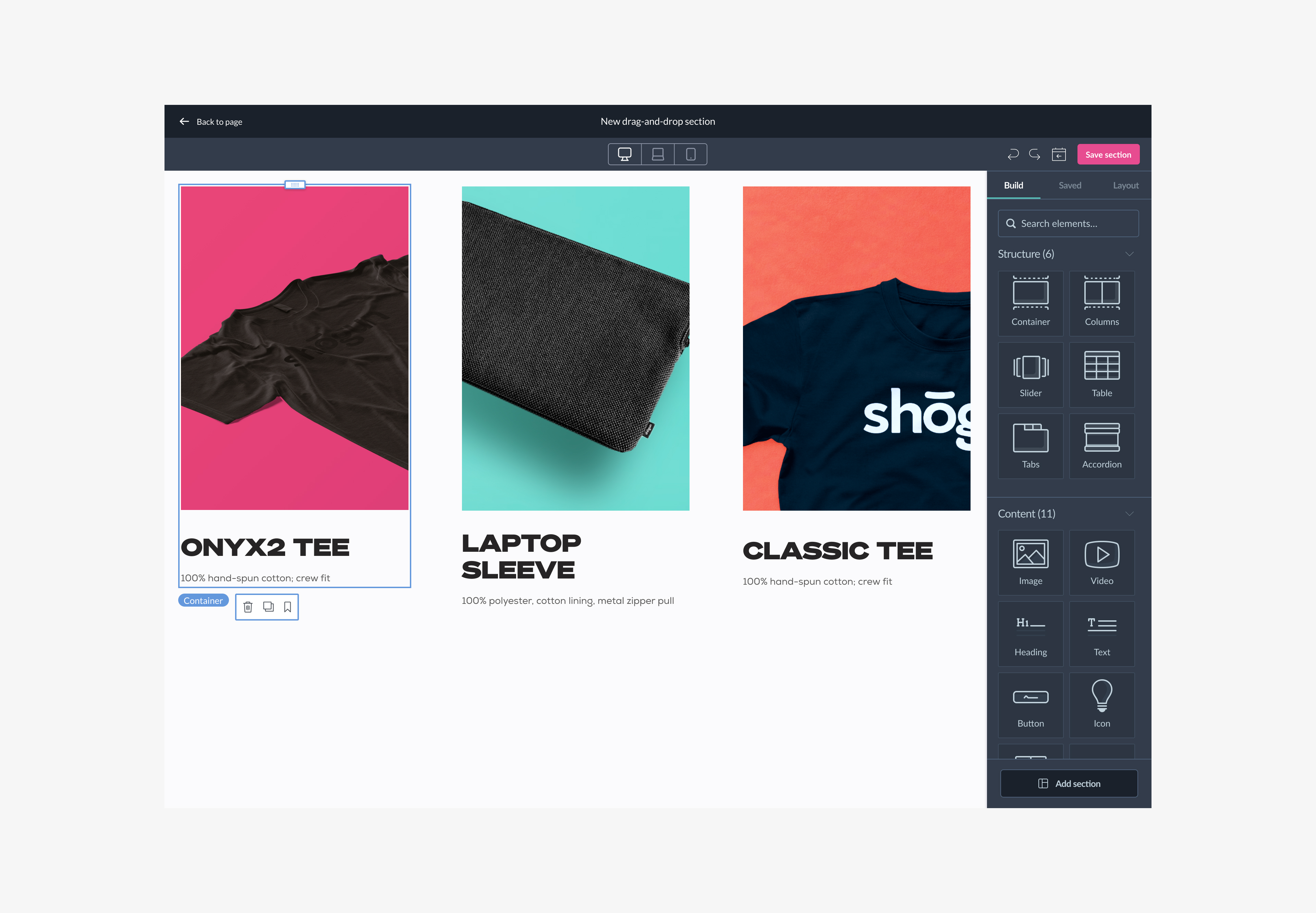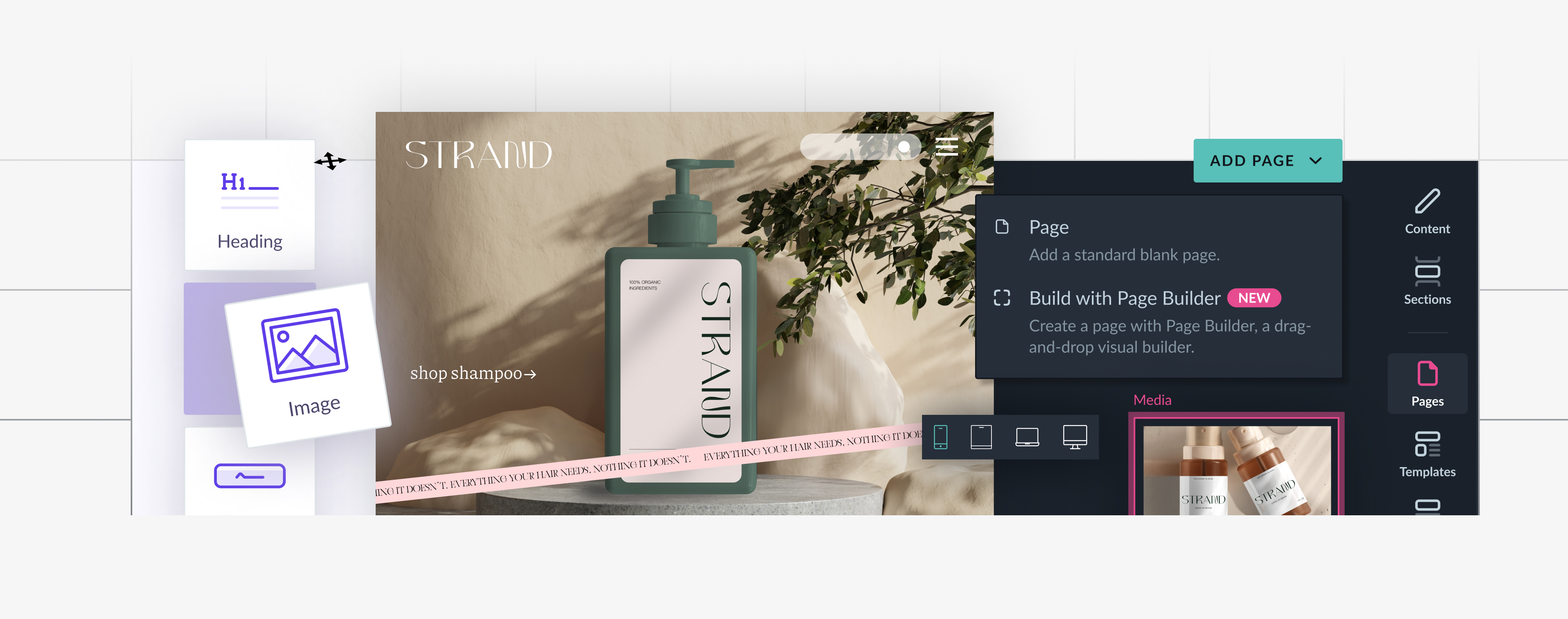 Page Builder on the other hand is a no-code drag&drop platform, where non-technical users are empowered to create and make layout changes directly through the no-code editor.